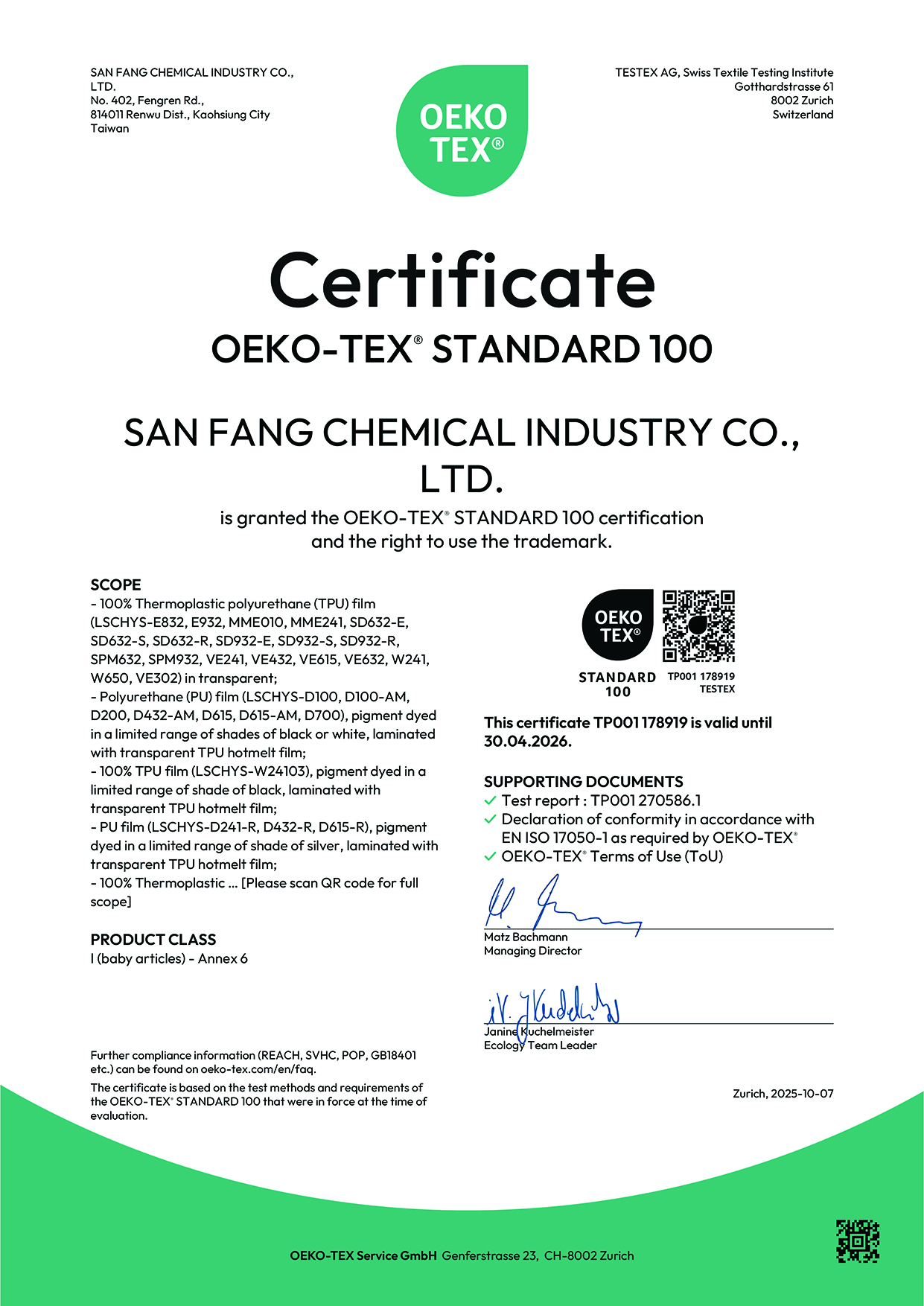 OEKO-TEX證書